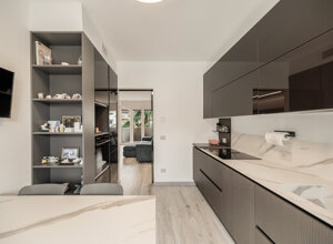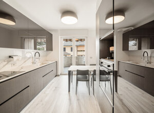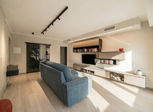 Nel progetto non abbiamo toccato la distrubuzione degli ambienti. Abbiamo fatto un lavoro “sartoriale” dello stato di fatto. dove possibile abbiamo sostituito le porte a battente con porte a scomparsa e con un infisso a vetro tra sala e cucina. sono stati rifatti tutti gli impianti e, per l'impianto termico, abbiamo sostituito il vecchio impianto a radiatori con più sofisticato climatizzatore canalizzato daikin con airzone. abbiamo rivisto tutta l'illuminazione della casa, studiandola in base alle abitudini della famiglia. L'arredo, disegnato e creato in collaborazione con home design monza è stato pensato per fornire un prodotto di qualità. La cucina, di arredo3 è stata pensata in ogni minimo dettaglio ed è la degna erede della cucina di scavolini che ha servito la famiglia per 30 anni.